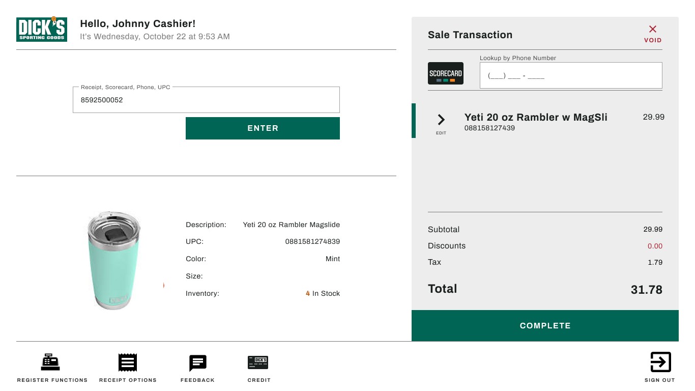 Dick's Sporting Goods needed to replace their third-party POS system . The 3rd party vendor's complicated codebase prevented the business from responding to market conditions, measuring marketing effectiveness, or iterating on customer experience. We had to rebuild everything in house without impacting day to day store sales volume.